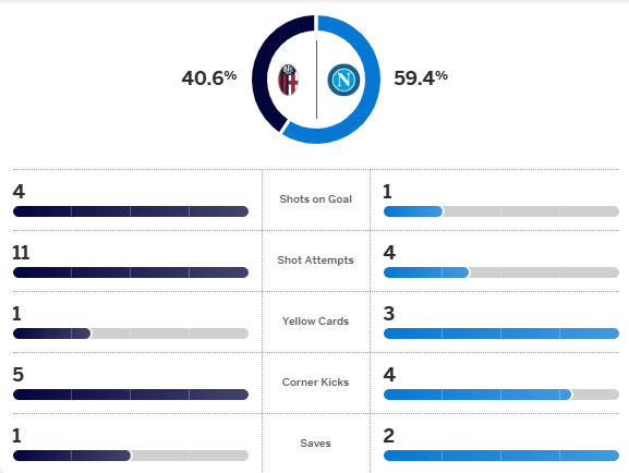 นาโปลี ทิ้งไพ่ไบ่สุดท้ายส่ง ลุคก้า ลงมาเพิ่มแต่ไร้พิษสง กลายเป็นฝั่ง โบโลญญ่า มีลุ้นลูกสามมากกว่าแต่ มิรันด้า ยิงติดบล็อคส่วน แบร์นาเดชี่ ปั่นข้ามคาน