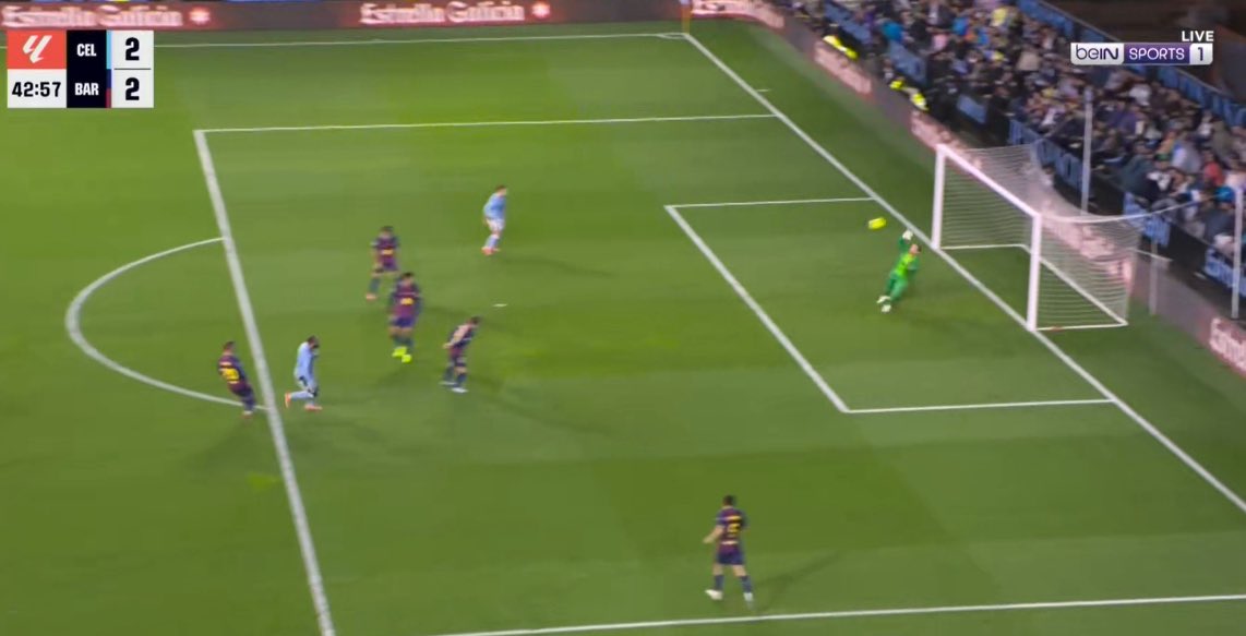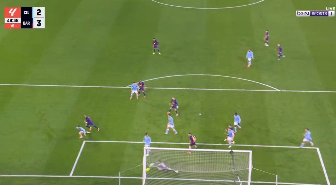 บาร์ซ่า น่าได้ประตูที่สองด้วยซ้ำจากการหลุดเดี่ยวของ แรชฟอร์ด ยิงไปติดเซฟ จากนั้น เซลต้า สวนกลับเร็ว การ์เรร่า หลุดกับดักล้ำหน้า บัลเด้ ยืนห้อยเป็นตัวสุดท้าย ยิงผ่านมือ เชสนี่ เข้าไปเฉียบขาด