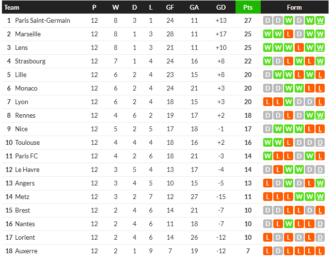 สรุปผล ลีกเอิง อาทิตย์ที่ 10 พฤศจิกายน 2025