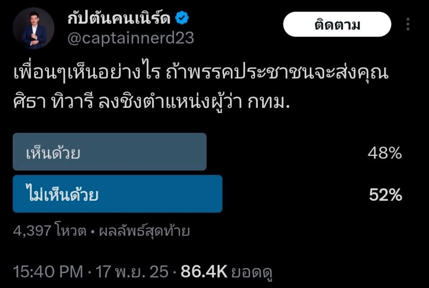 [RE: เสียงแตกพอสมควรเลยนะเนี่ย เรื่องที่พรรคส้มจะส่งคุณศิธา ลงผู้ว่า กทม.]