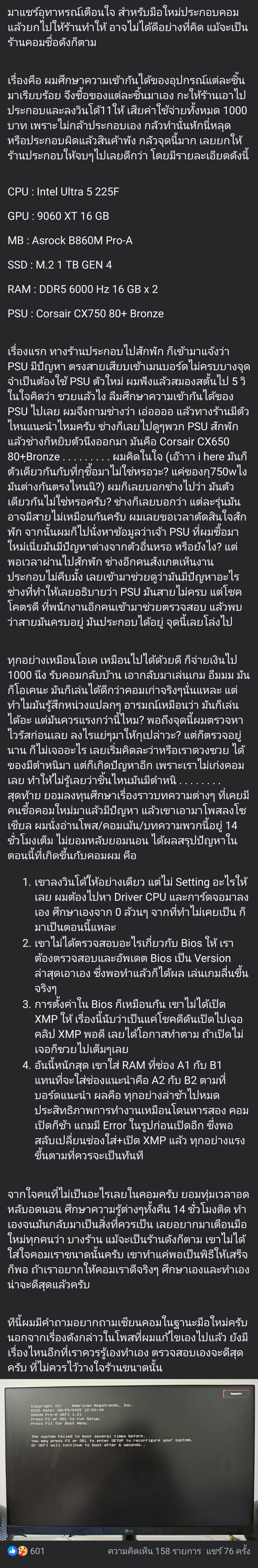 [RE: แชร์อุทาหรณ์เตือนใจ สำหรับมือใหม่ประกอบคอม แล้วยกไปให้ร้านทำให้]