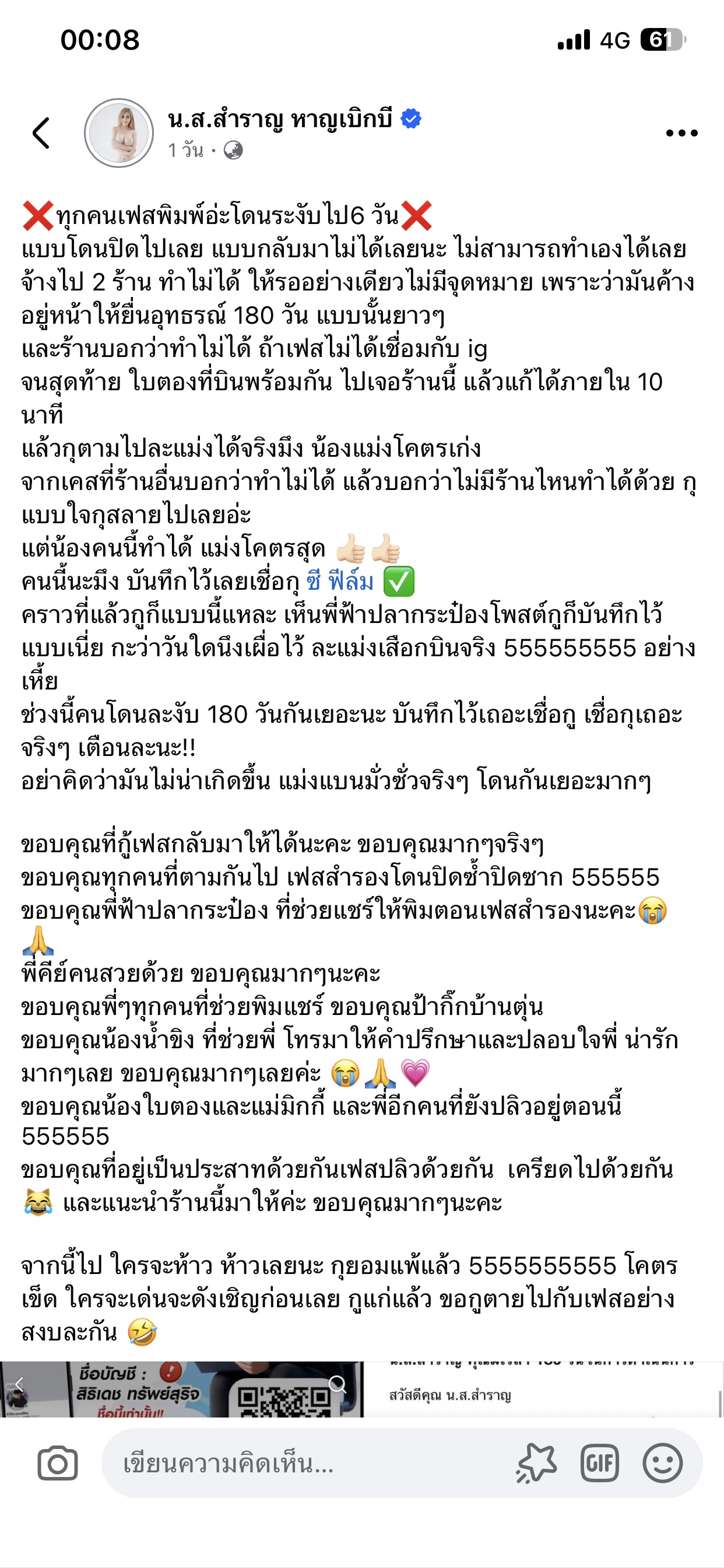 * คุยกับพวกที่รับแก้เฟสใน FB ใน Tikkok ทั้งหมด ไม่มั่นใจว่าจะแก้ได้ไหม บางเจ้าเก็บเงินก่อน บางเจ้าแก้ได้ค่อบเก็บเงิน ราคาแก้เฟสปิดถาวร ประมาณ 5,000-15,000 บาท