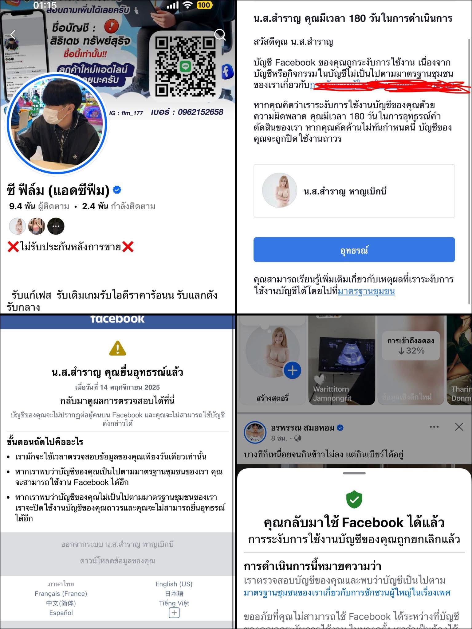 สาเหตุที่โดน คือ โพสเก่าปี 2023 โดยรายงานว่าผิดมาตรฐานไป ผมกดอุทธรณ์ไม่ผ่าน มันเลยปิด Facebook เลย (ช่วงหลังๆ ผมไม่ได้ใช้เฟสส่วนตัวเป็นแอดมินโพสแล้ว ใช้บัญชีแอดมินโพสแทน เพราะเคยเจอเคสแบบนี้ แต่อุทธรณ์ผ่าน)