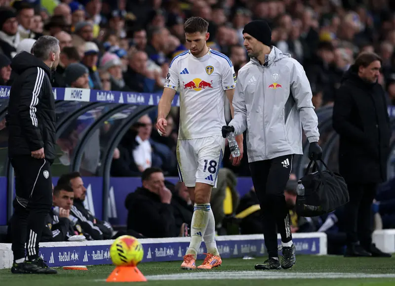 ลีดส์ ต้องเปลี่ยนนักเตะคนแรกเมื่อสตัช เล่นต่อไม่ไหวจากจังหวะได้ประตูที่หลังกระแทกพื้นต้องให้อาโอะ ทานากะ ห้องเครื่องชาวญี่ปุ่นลงมาเล่นแทน