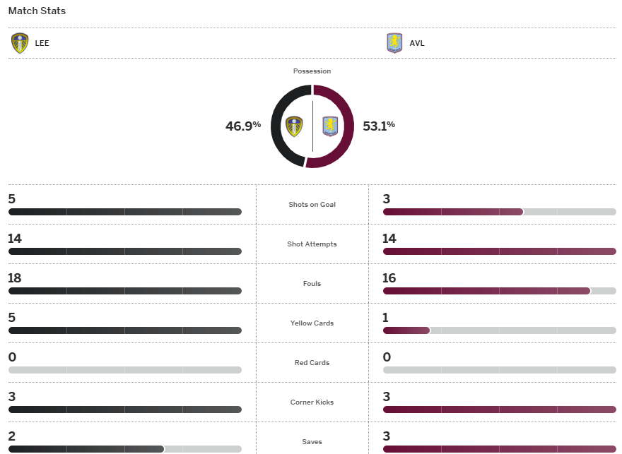 ลูคัส เมชา ได้ลูกเฮงพาเจ้าถิ่นนำก่อนตั้งแต่ต้นเกม แต่ลงมาครึ่งหลังแอสตัน วิลล่า พลิกฟอร์มมายิง 2 ประตูรวดจากมอร์แกน โรเจอร์ส ชาร์จเสาแรก และชิพฟรีคิกเหนือๆ เข้าไปทำให้บุกมาแซงชนะ 2-1