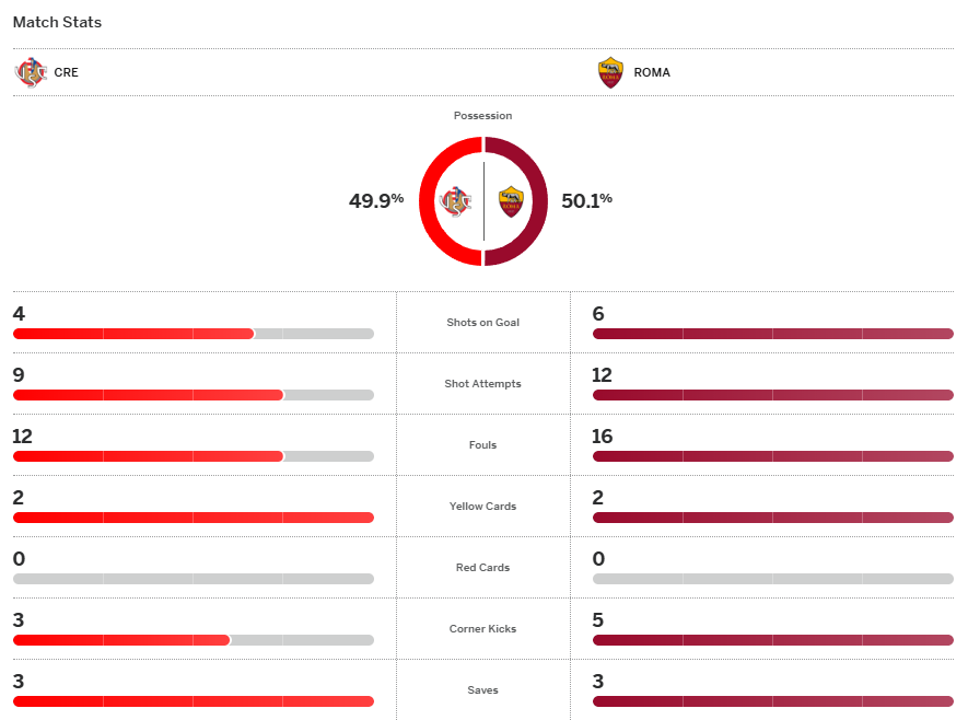 จบเกม โรม่า เอาชนะ เครโมเนเซ่ ไปอย่างไม่ยากเย็น 3-1 คว้าชัย 4 จาก 5 นัดหลังสุดในลีกและทำให้พวกเขากลับมาเป็นจ่าฝูงอีกครั้งมีแต้มเหนือ นาโปลี 2 คะแนน