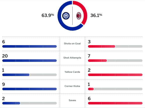 อินเตอร์ มิลาน ยิงชนเสาสองครั้งในครึ่งแรก ทว่าต้นครึ่งหลังกลับเสียประตูด้วยลูกซ้ำจ่อ คริสเตียน พูลิซิช และแม้มีโอกาสตีเสมอแต่ ฮาคาน ชัลฮาโนกลู เจอทีมเก่าสังหารจุดโทษติดเซฟ ไมค์ เมญอง สุดท้าย เอซี มิลาน เฉือน 1-0 ขยับรั้งรองจ่าฝูง ส่งอริร่วมเมืองร่วงไปอันดับ 4
