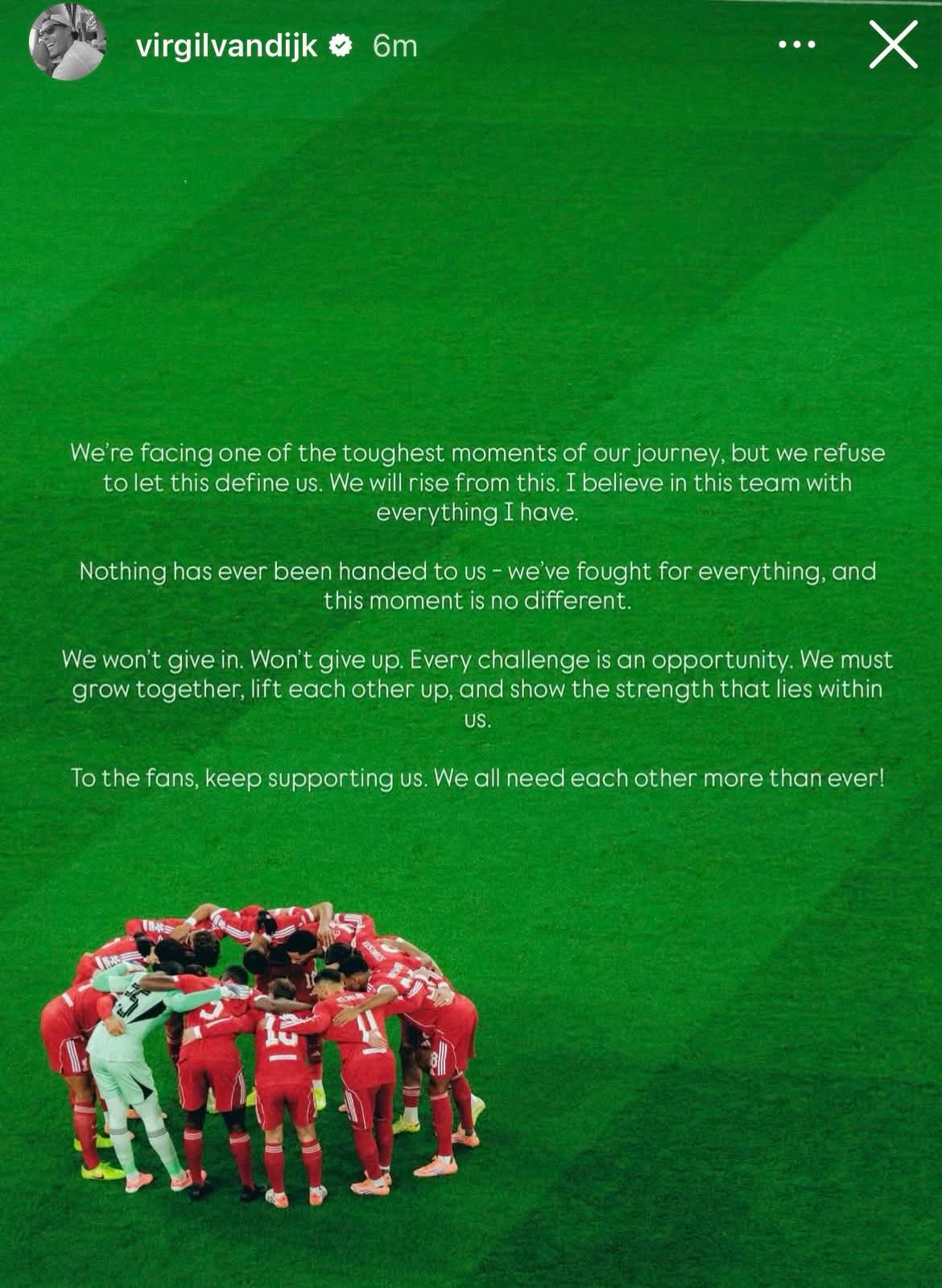 เวอร์จิล ฟาน ไดจ์ค ส่งสัญญาณขอความช่วยเหลือมายังแฟนบอลของสโมสร #Liverpool ด้วยอีกคนว่าให้ช่วยสนับสนุน และส่งใจเชียร์ทีมกันต่อไป แม้ตอนนี้จะพบกับสถานการณ์ที่ย่ำแย่ก็ตาม