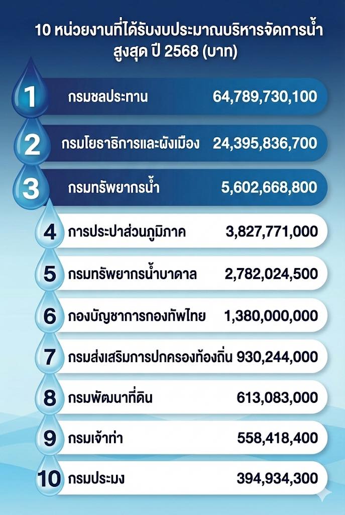 เงินจัดการ เรื่องน้ำ ส่วนใหญ่ อยู่ในมือเกษตร กับ มหาดไทย ท้องถิ่น ได้แค่ เศษเนื้อข้างเขียง