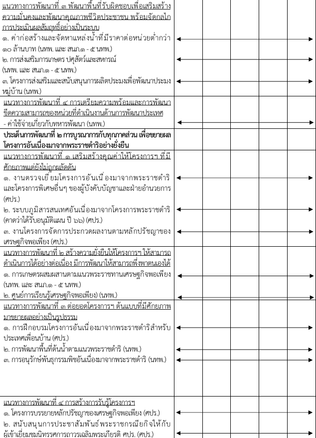 งบประมาณส่วนใหญ่ลงไปกับโครงการเกี่ยวกับระบบและสิ่งก่อสร้างประกอบเพื่อส่งน้ำหรือระบายน้ำ อาทิ