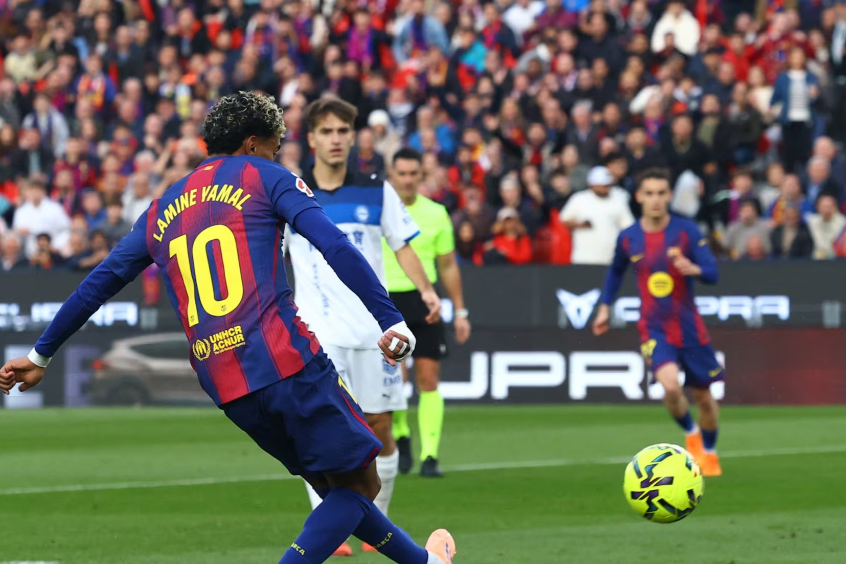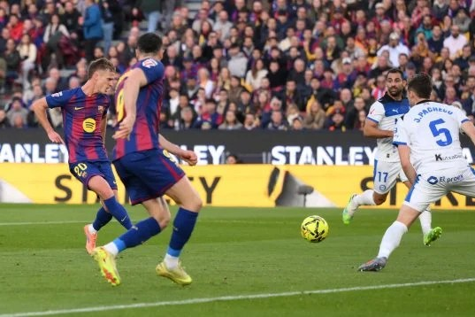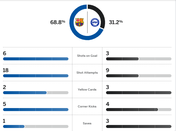 บาร์เซโลน่า เสียประตูด้วยลูกเตะมุมตั้งแต่นาทีที่ 1 แต่ไม่นาน ลามีน ยามาล ตีเสมอแล้วท้ายครึ่งแรก ดานี่ โอลโม่ ยิงแซง ก่อนทดเจ็บครึ่งหลัง โอลโม่ ปิดกล่องอีกเม็ด เปิดบ้านชนะอลาเบส 3-1 แก้ตัวจากความพ่ายแพ้บอลยุโรป ขึ้นจ่าฝูง ลาลีก้า ก่อน เรอัล มาดริด ลงแข่ง