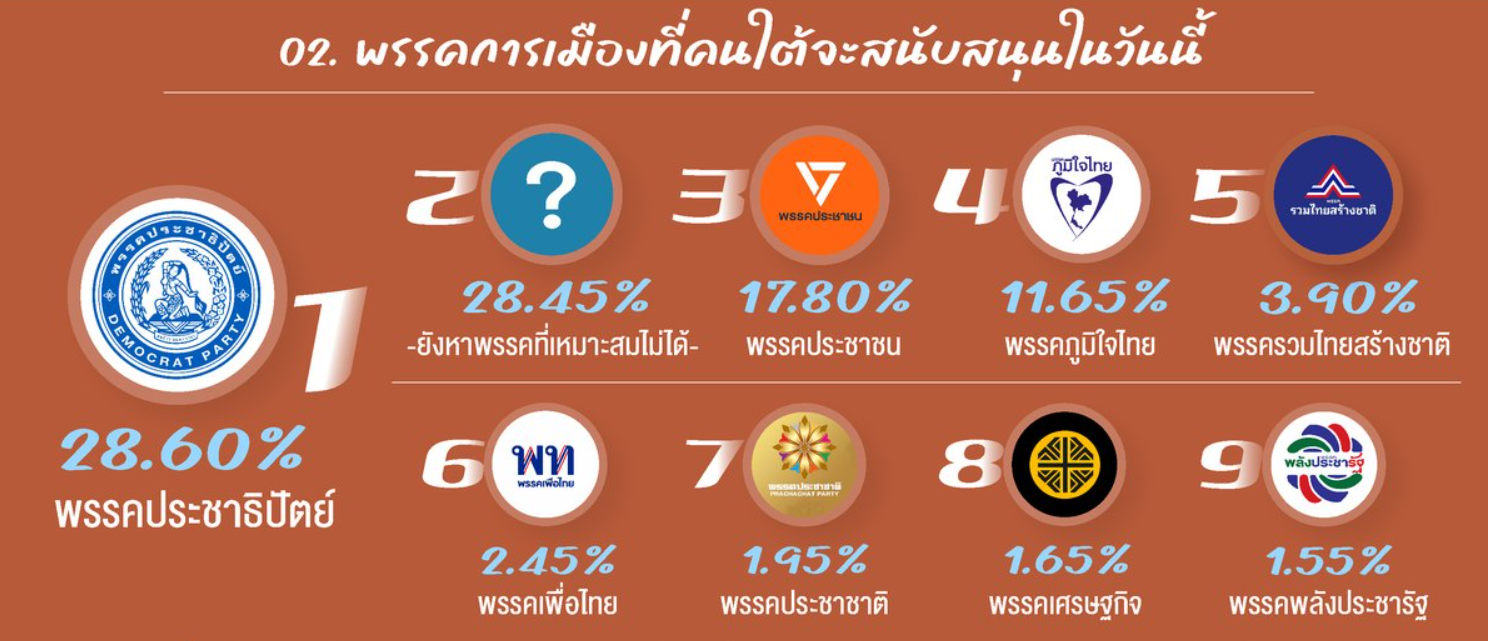ดูนิด้าโพลช่วง ตุลาคม 2565 “คนที่ใช่ พรรคที่ชอบ ของคนใต้” ก่อนเลือกตั้ง พฤษภาคม 2526