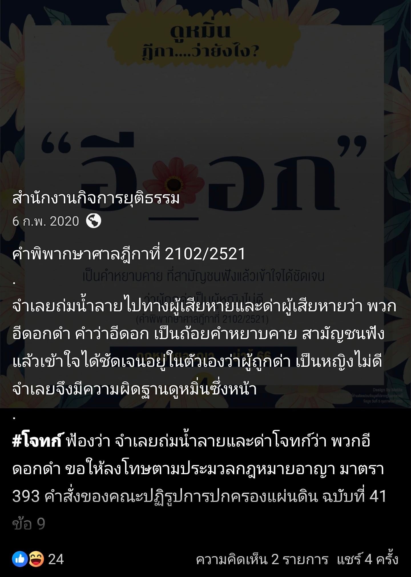 คำพวกนี้ ติดคุกจริงนะครับ ไม่งั้นก็ต้องเสียเงินค่าเยียวยา คดีแบบนี้เยอะขึ้นทุกวัน