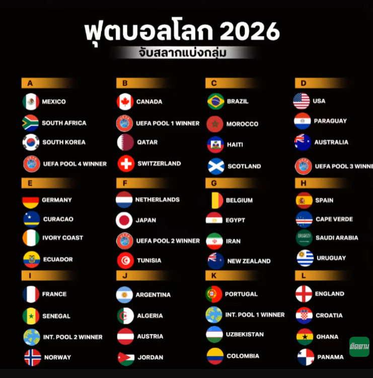 ผลจับสลาก บอลโลก2026(แบบคร่าวๆ)
