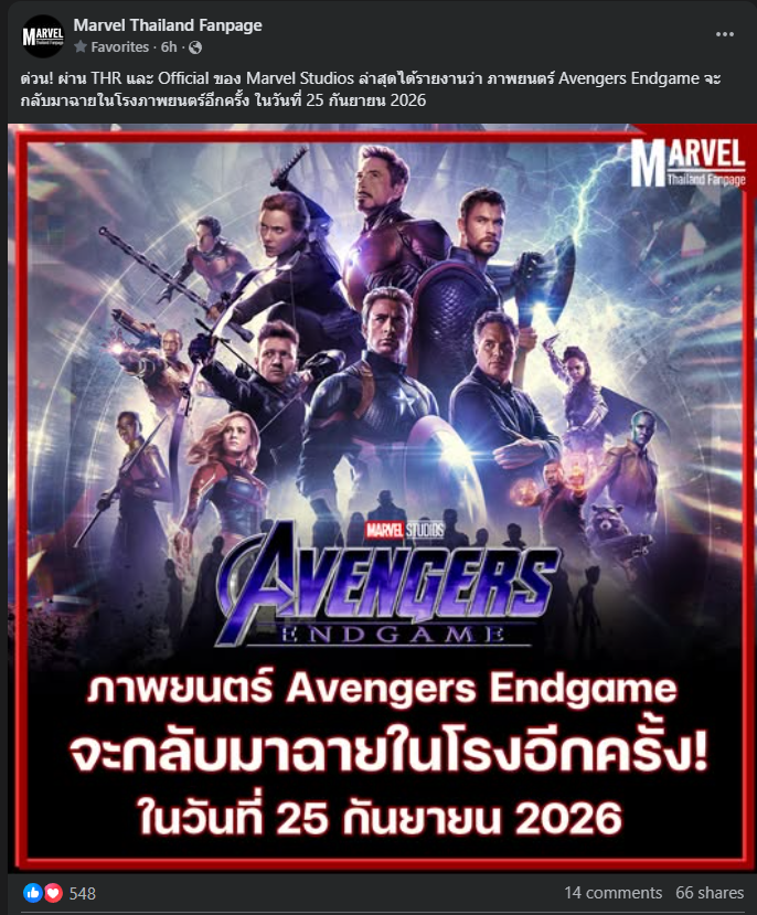 [RE: Avengers Endgame จะกลับมาฉายในโรงภาพยนตร์อีกครั้ง วันที่ 25 กันยายน 2026]