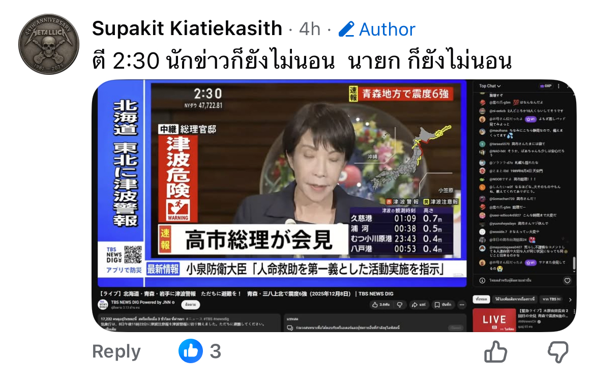 ผมอยู่โตเกียวชานเมือง เมื่อคืนไหวนิดหน่อย แต่ข่าวจากรัฐคือไวมากๆ