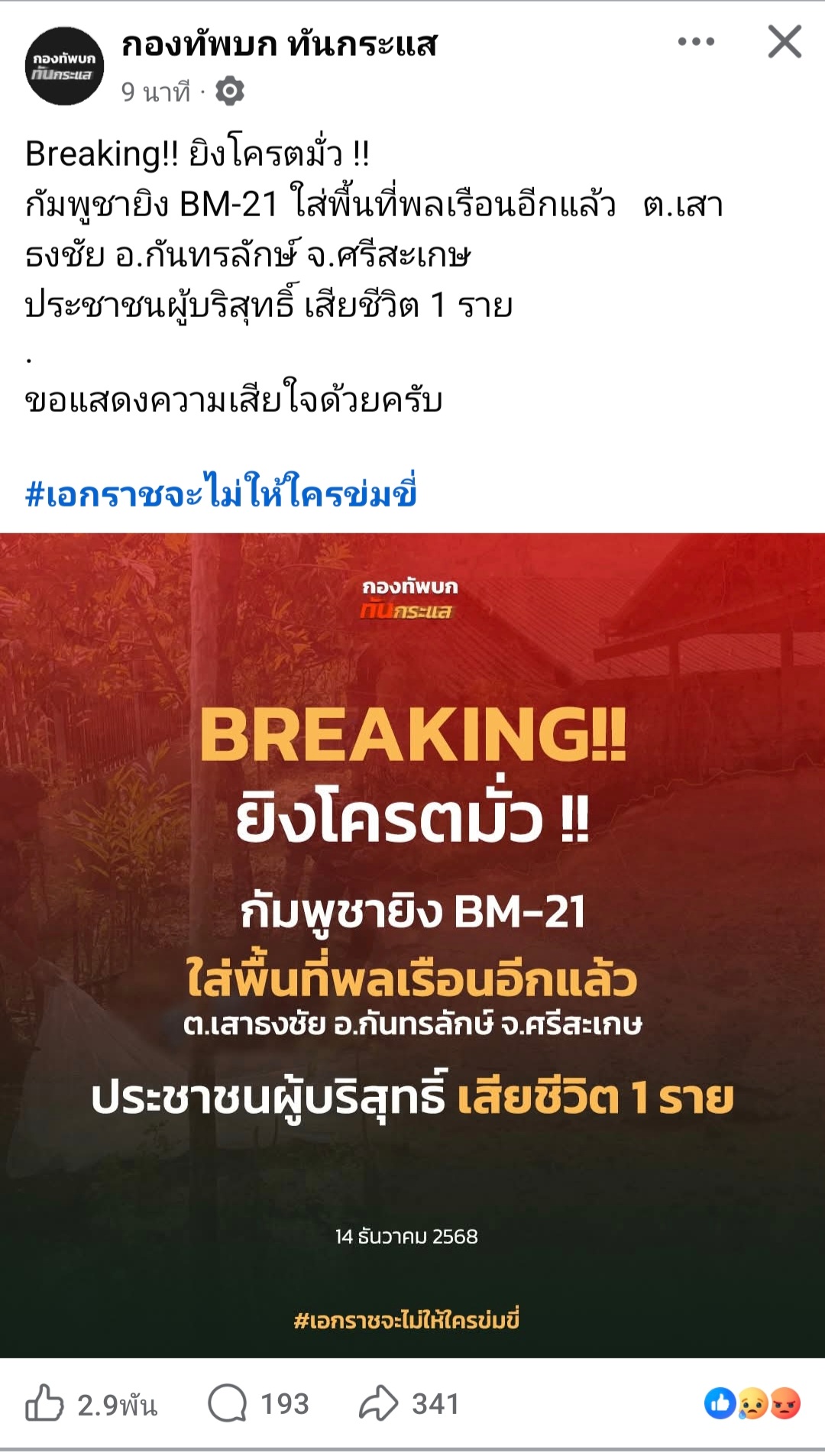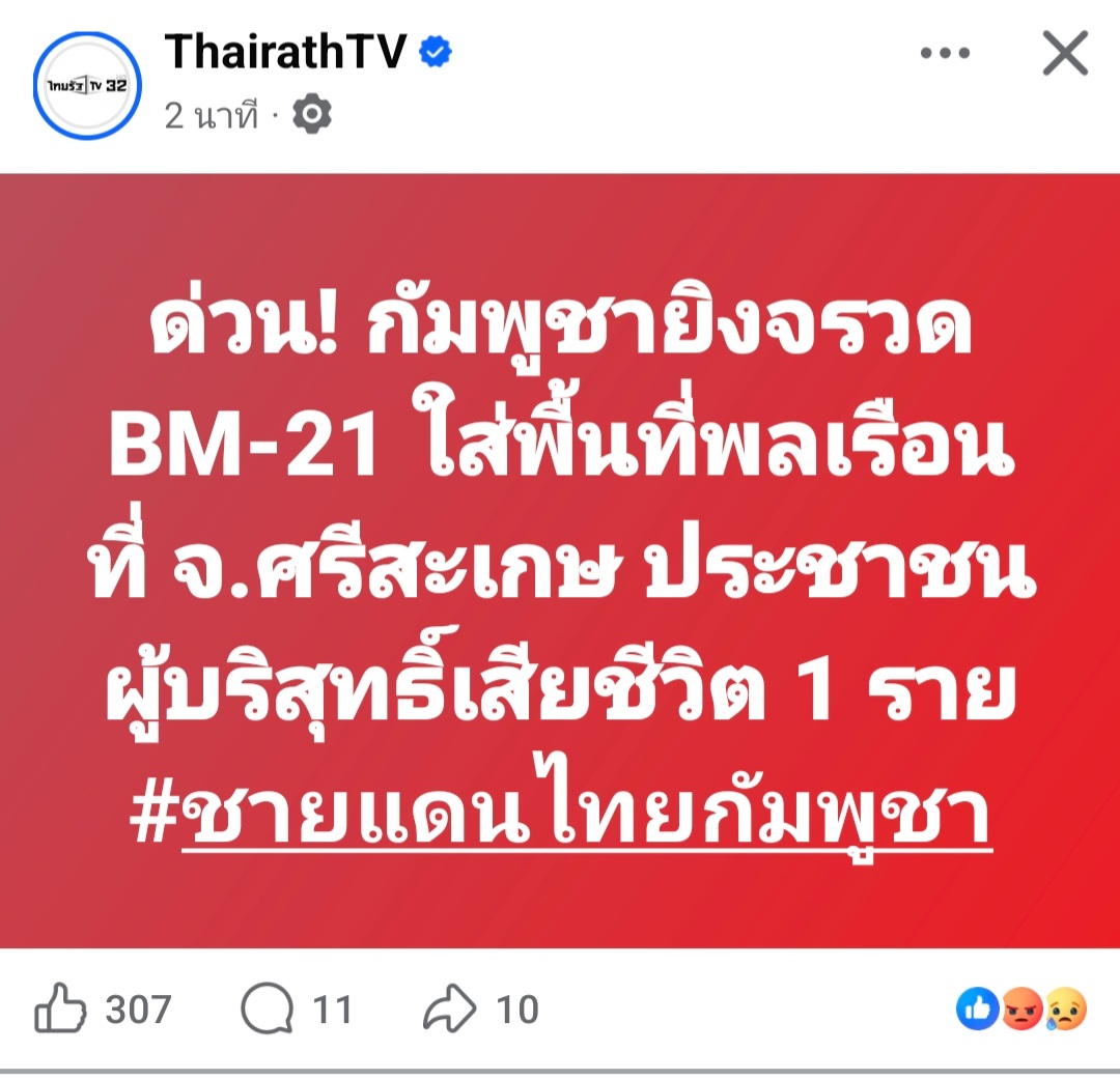 [RE: Breaking:เขมรยิงBM21ใส่พลเรือนไทยเสียชีวิต1ราย]