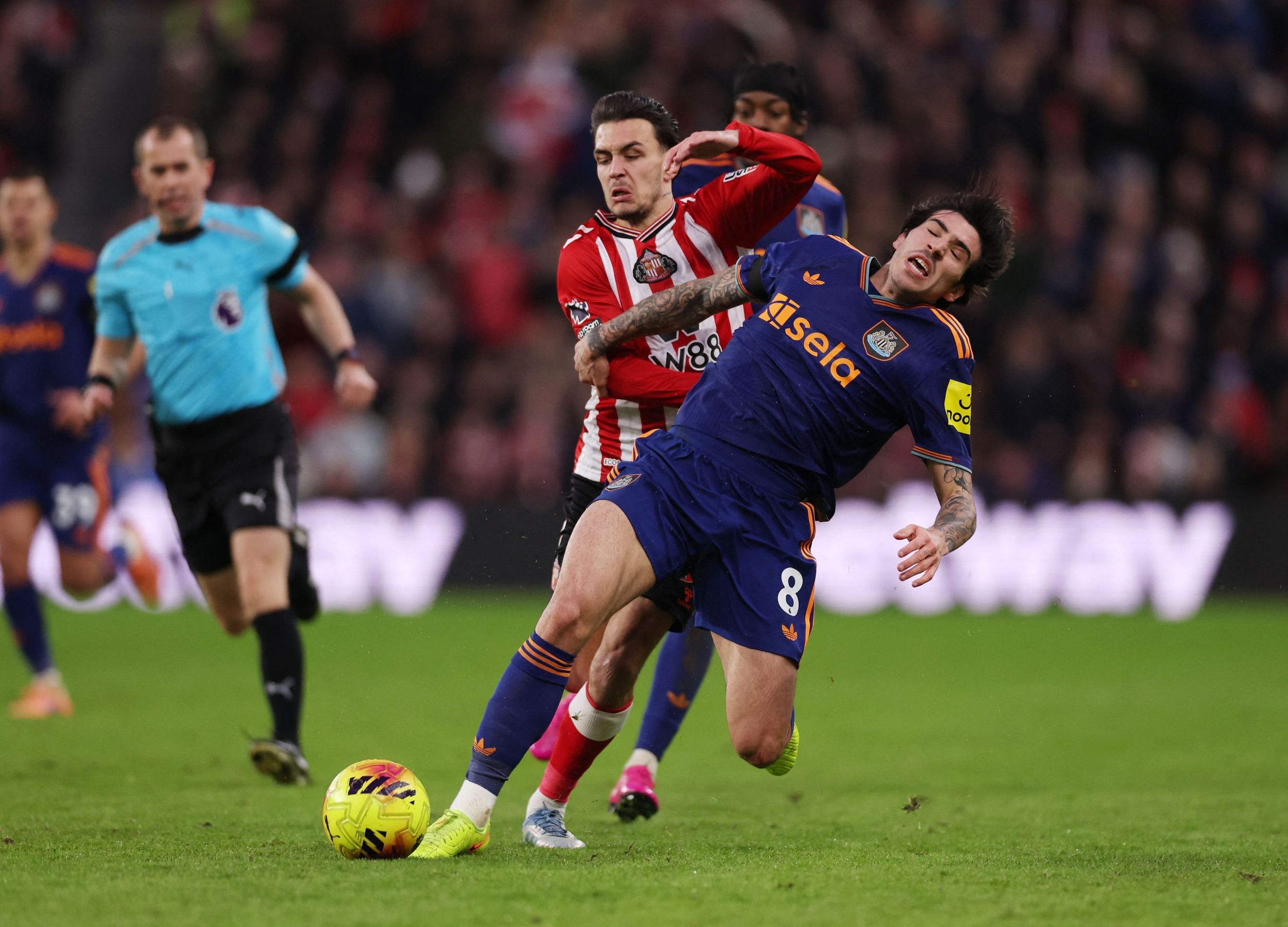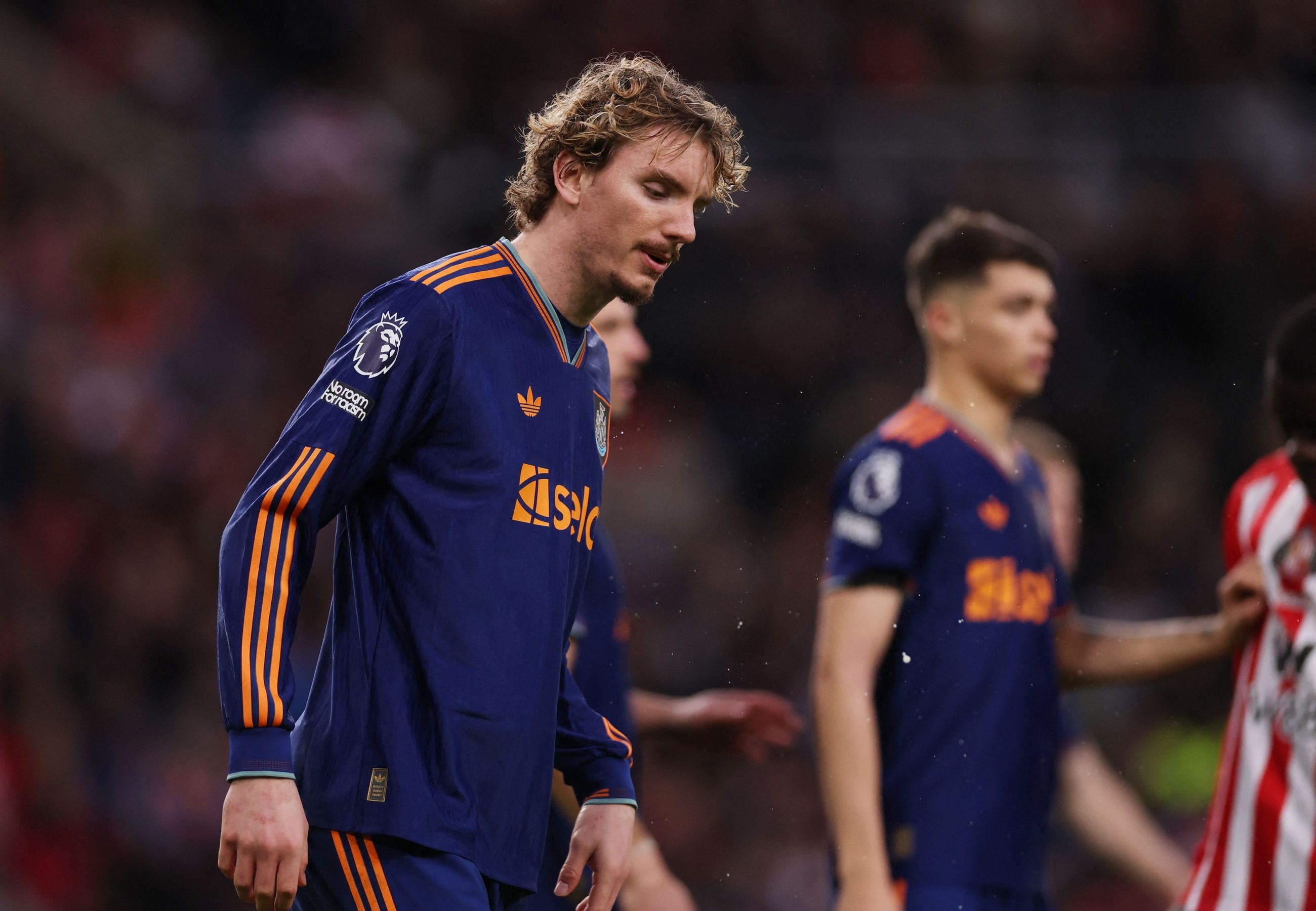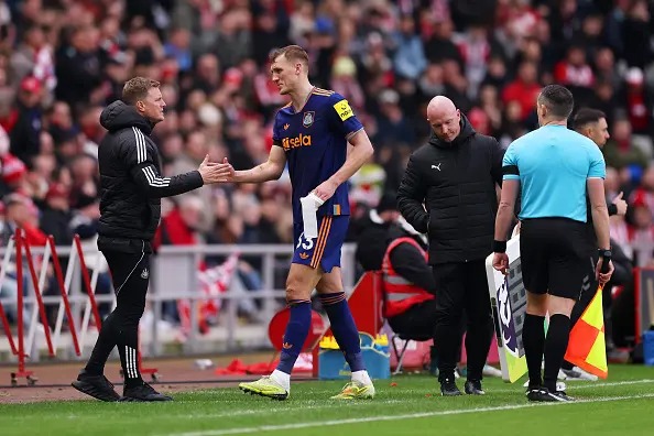 ท้ายครึ่งแรก นิวคาสเซิ่ล จำเป็นต้องเปลี่ยนตัว เบิร์น เจ็บจากจังหวะสไลด์สกัดบอลแล้ว มูคีเอเล่ สไลด์มาเหมือนกันสองเข่าเข้าซี่โครงพอดี แชร์ ต้องลงมาเล่นแทน