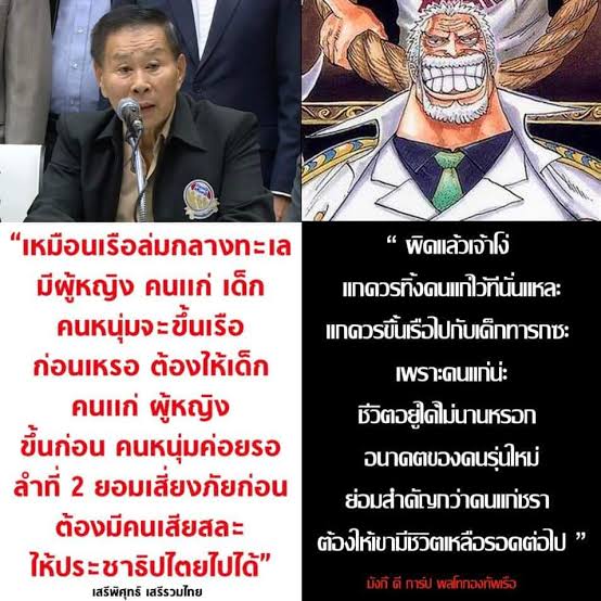 "ถ้าหากพวกเจ้าอยู่บนเรือที่กำลังล่ม มีเด็กและคนแก่อยู่ ถ้าต้องทิ้งใครซักคน เจ้าจะทิ้งใคร"