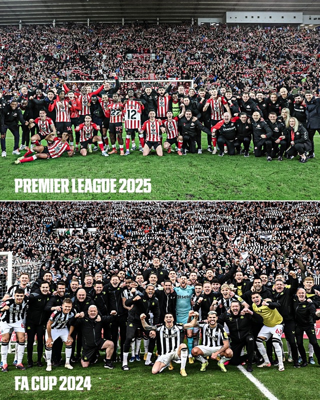 "แมวดำ" ซันเดอร์แลนด์ เย้ยกลับคู่ปรับแดนเหนืออย่าง "สาลิกา" นิวคาสเซิล ยูไนเต็ด ถ่ายภาพทั้งทีมกลางสนามต่อหน้าแฟนบอล ภายหลังเก็บชัยชนะดาร์บี้บนลีกสูงสุดครั้งแรกในรอบทศวรรษ