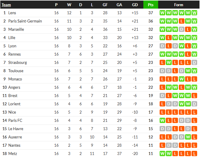 สรุปผล ลีกเอิง อาทิตย์ที่ 14 ธันวาคม 2025