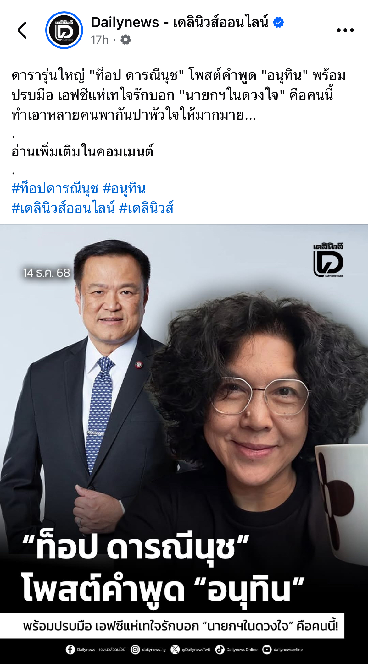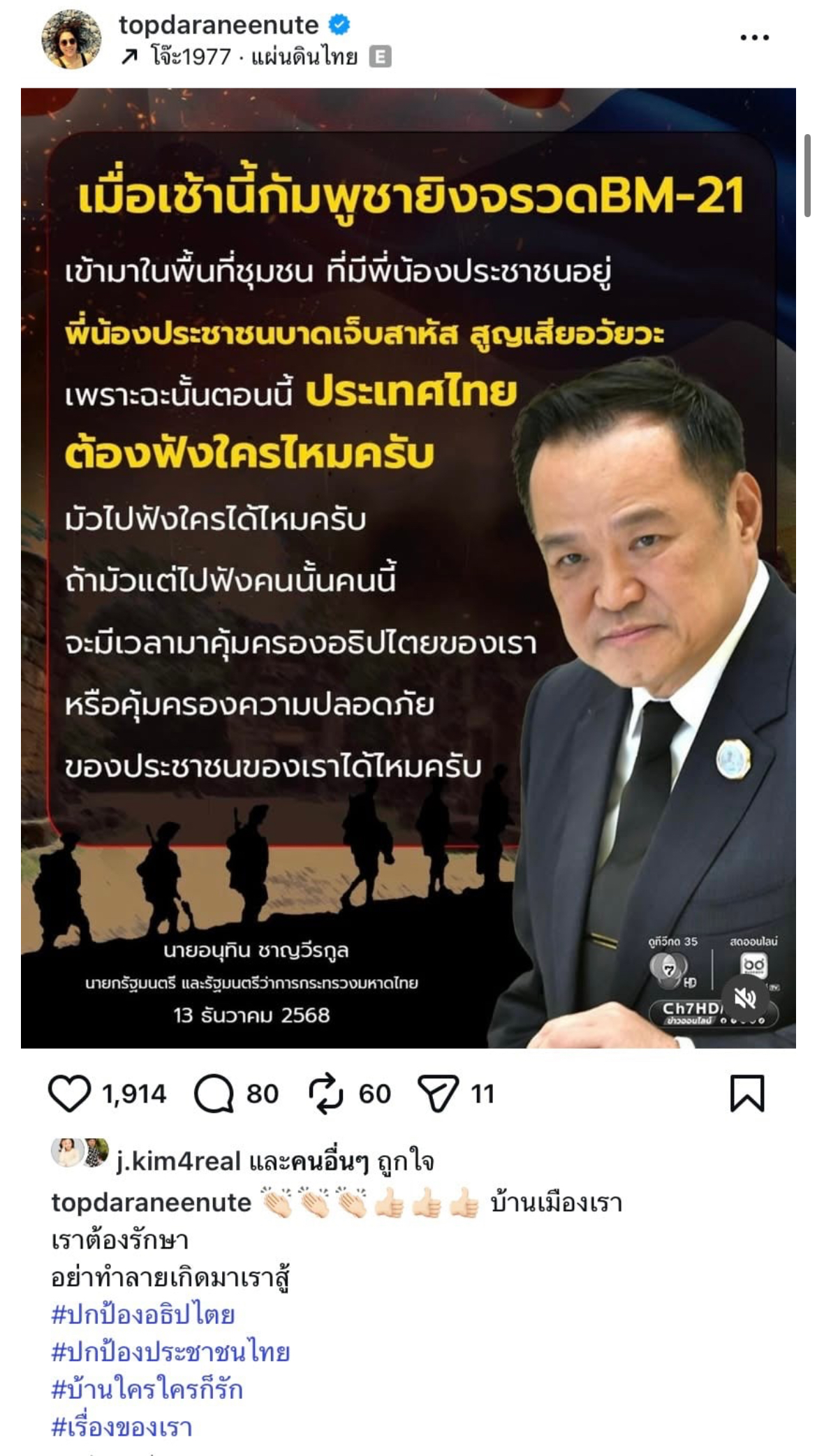 [RE: ท็อปดารณีนุชเชิดชูนายกหนู1โพสต์]