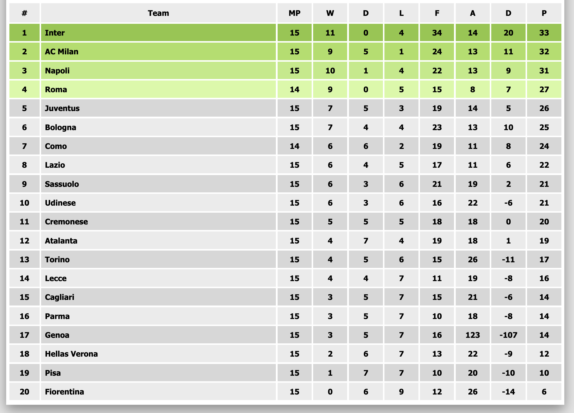ตารางคะแนนตอนนี้แข่งกัน16นัดแล้วแต่ดันเหลือสามทีมที่แข่ง15นัด มีแมนยู ไบร์ตัน บอร์นมัธ งงกับตารางเลย