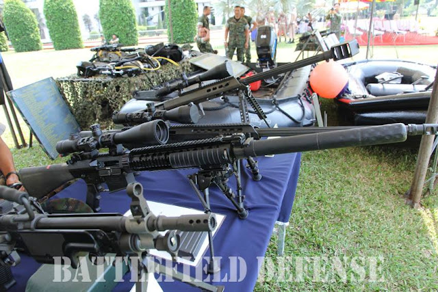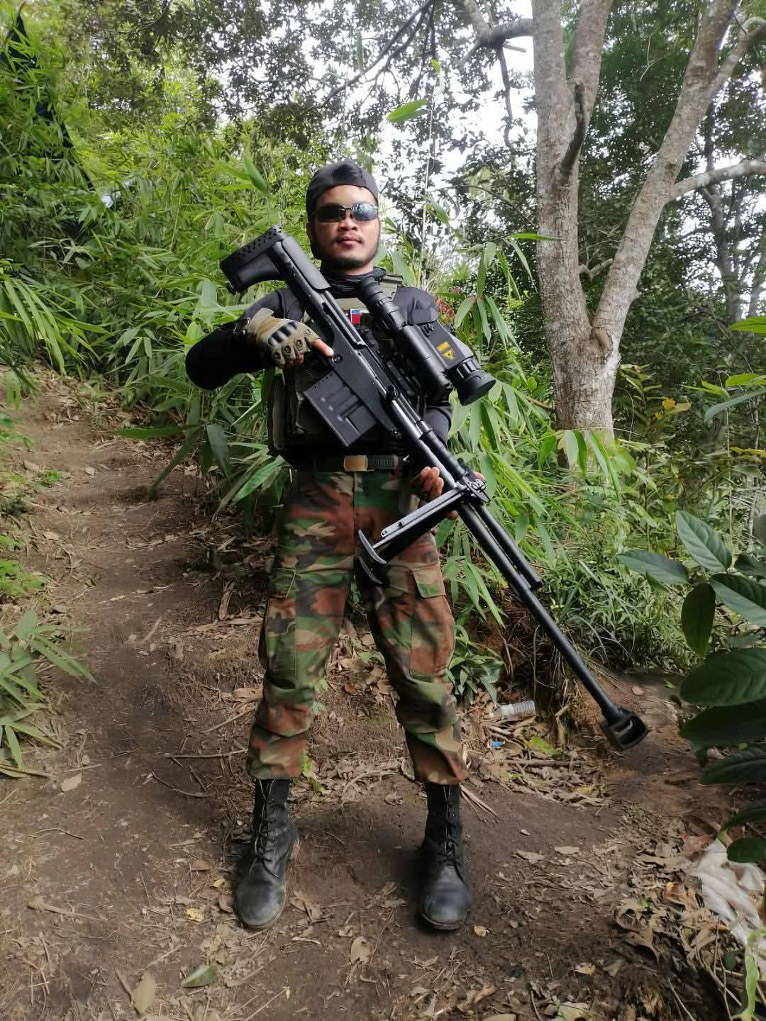 ทหารกัมพูชา กับปืนไรเฟิลต่อต้านวัตถุ (Anti-Materiel Rifle) แบบกึ่งอัตโนมัติ รุ่น QBU-10 ของขวัญจากจีน ถูกนำมาใช้ในพื้นที่แนวรบพระวิหาร ภาพจากเทเลแกรมทหารกัมพูชา