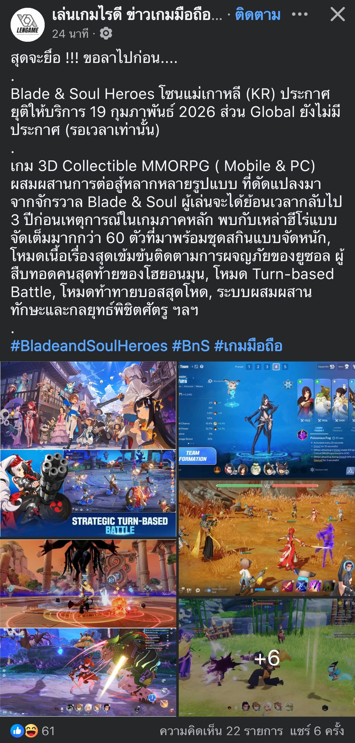 [RE: Blade & Soul Heroes เซิฟเกาหลีประกาศยุติให้บริการ]