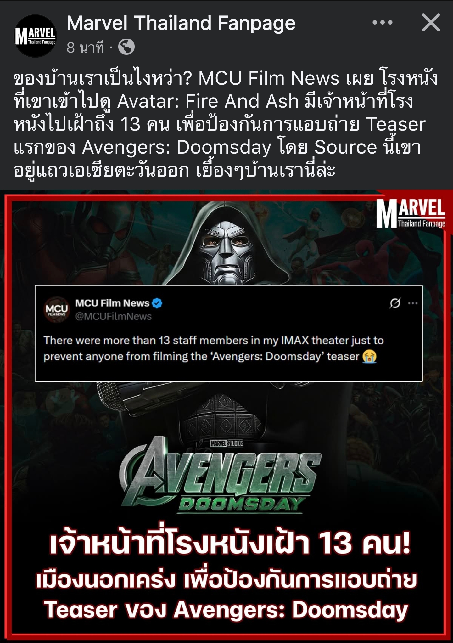 [RE: เจ้าหน้าที่โรงหนังเฝ้า 13 คน เพื่อป้องกันแอบถ่าย Teaser Avengers: Doomsday]