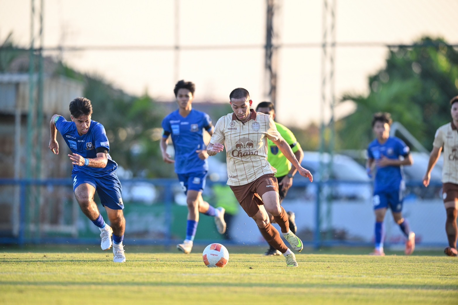 นาทีที่ 74 จากจังหวะความผิดพลาดของแนวรับ คัสตอม ยูไนเต็ด บอลมาเข้าทาง ปฐมพล เจริญรัตนาภิรมย์ ได้โอกาสหลุดเดี่ยว ก่อนจะยิงด้วยขวา แต่เป็นทาง อาณาภัทร นาคงาม ที่วิ่งมากระโดดสไลด์บอลออกหลังไปได้ทัน
