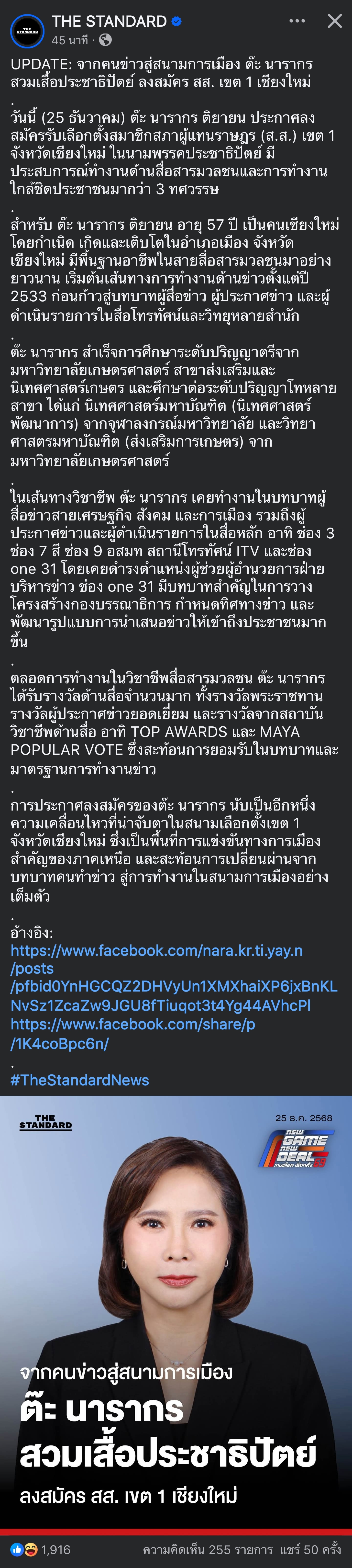 [RE: ต๊ะ นารากร ลงสมัคร สส.เขต 1 เชียงใหม่ ในนามพรรคประชาธิปัตย์]