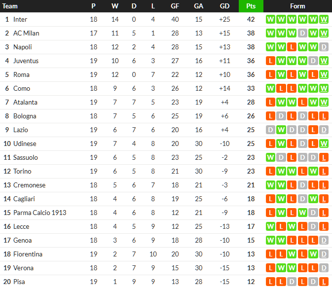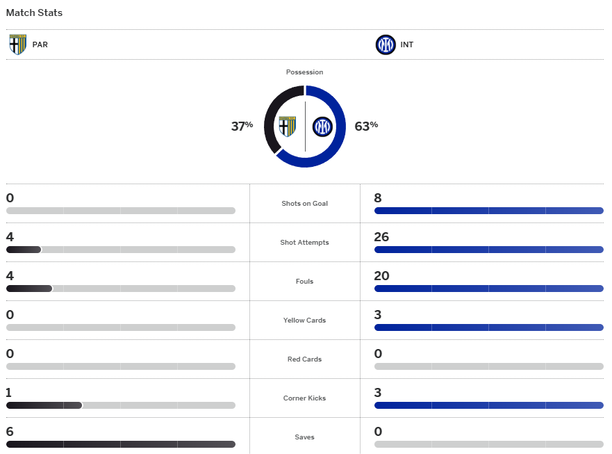 จบเกม อินเตอร์ เอาชนะ ปาร์ม่า 2-0 เป็นการคว้าชัยชนะ 6 เกมติดต่อกันในลีกและขยับขึ้นไปนำจ่าฝูงเหนนือ มิลาน ห่างเพิ่มเป็น 4 แต้ม