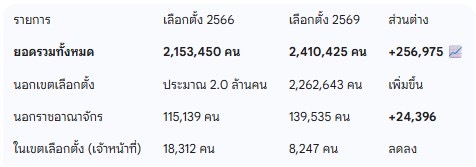 [RE: คนสนใจการเมืองน้อยลง? สรุปยอดลงทะเบียนเลือกตั้งนอกเขตปี 2566vs2569]