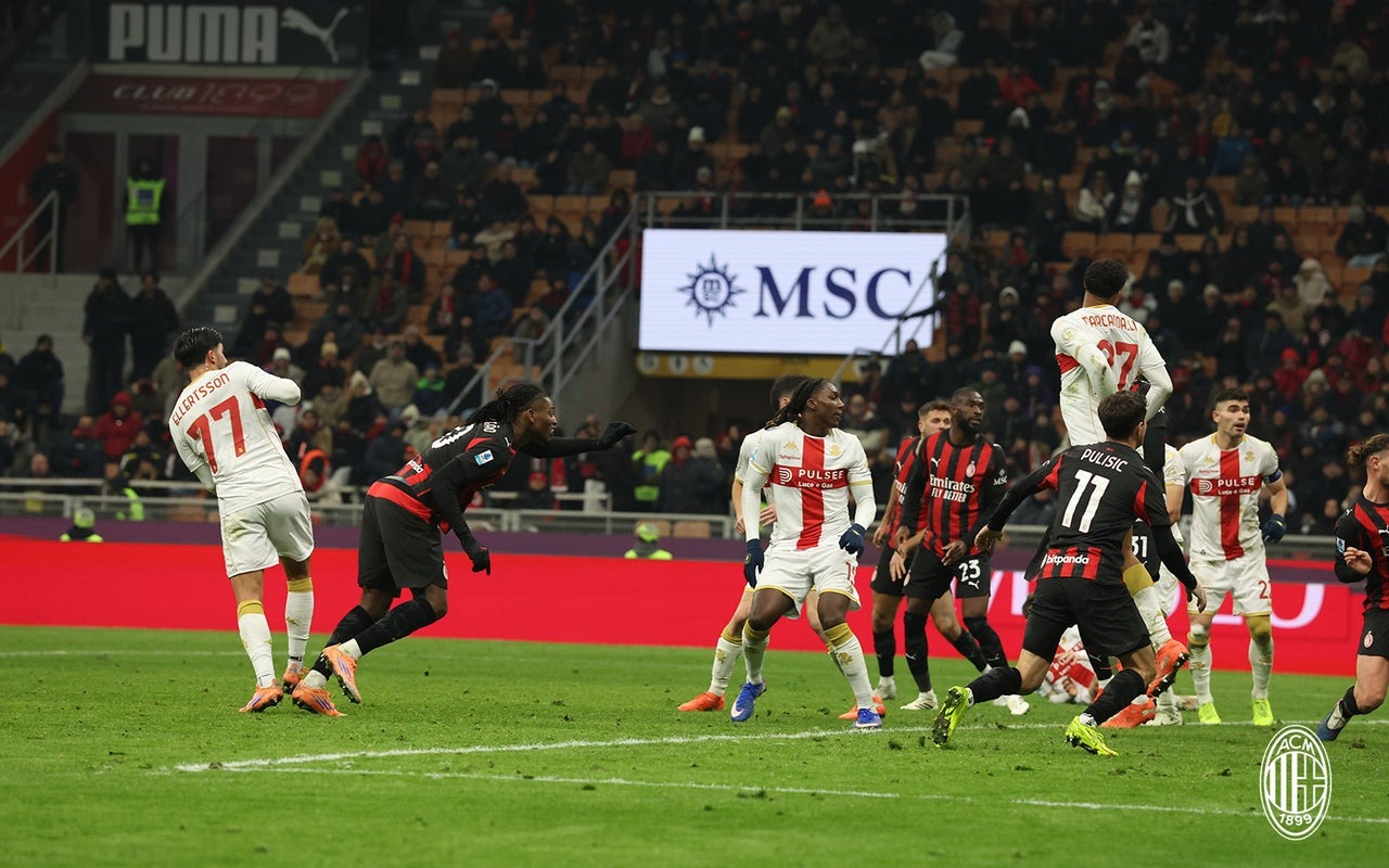 มิลาน ยังแค่เกือบจะได้ประตูตีเสมอหลังจาก เลเอา ไหลให้ ชีค ทางขวาเติมมาถึงเขตโทษแล้วเปิดไปหน้าประตู พูลิซิช ชาร์จไม่ได้บอลหลุดไปอีกฝั่ง บาร์เตซากี้ ได้ยิงส่งบอลพุ่งย้อนไปออกโคนเสาแรกหน่อยเดียว