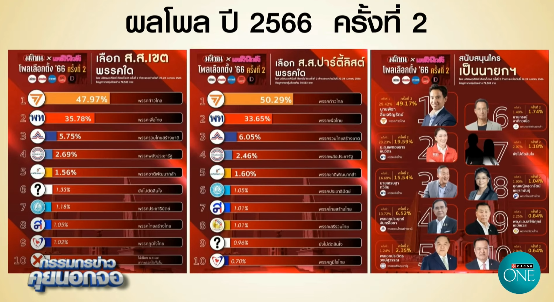 เขาบอก ภูมิใจไทยเบอร์ 1 ส้มที่ 2 แดงที่ 3 (2 กับ 3 คะแนนไล่เลี่ยกัน)