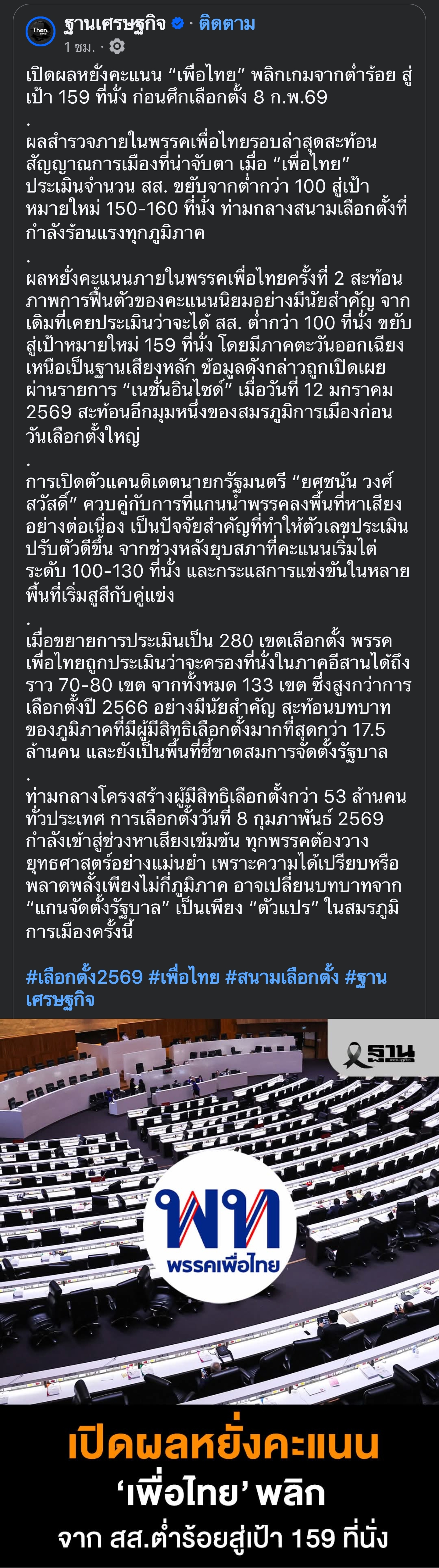 [RE: เปิดผลหยั่งคะแนน เพื่อไทย พลิก จาก สส.ต่ำร้อย สู่เป้า 159 ที่นั่ง]