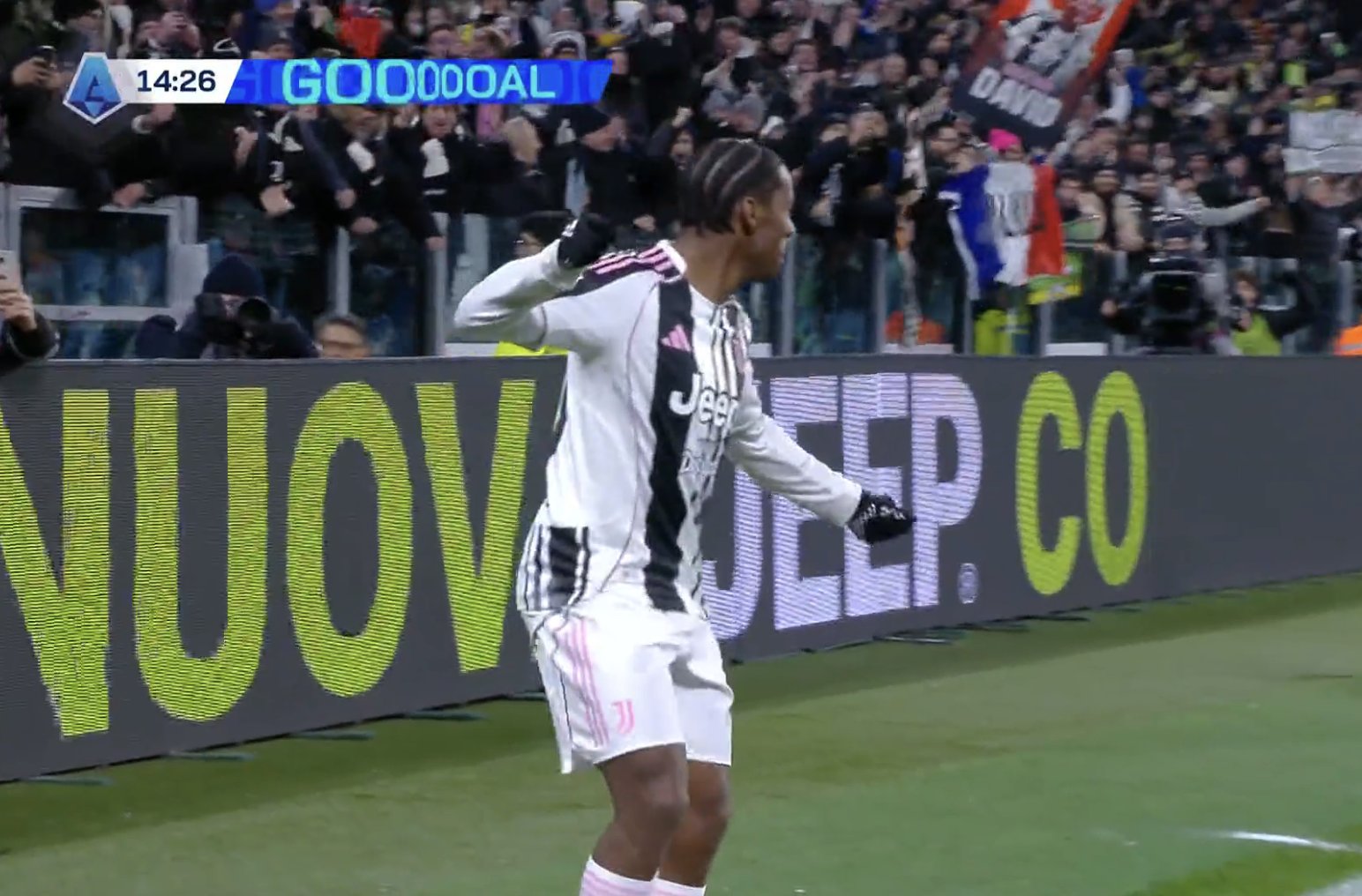 ยูเวนตุส ได้ประตูที่สองอย่างรวดเร็วจากจังหวะสวนกลับ ตูราม ลากจากแดนตัวเองถึงแถวหัวกะโหลก ก่อนแตะให้ เดวิด ที่วิ่งตามไลน์ได้ดี ยิงสวน ออเดโร่ เข้าไป นับเป็นการยิง 2 นัดติดต่อกันของหัวหอกแคนาดาด้วย ตั้งแต่พลาดจุดโทษในเกมเจ๊า เลชเช่