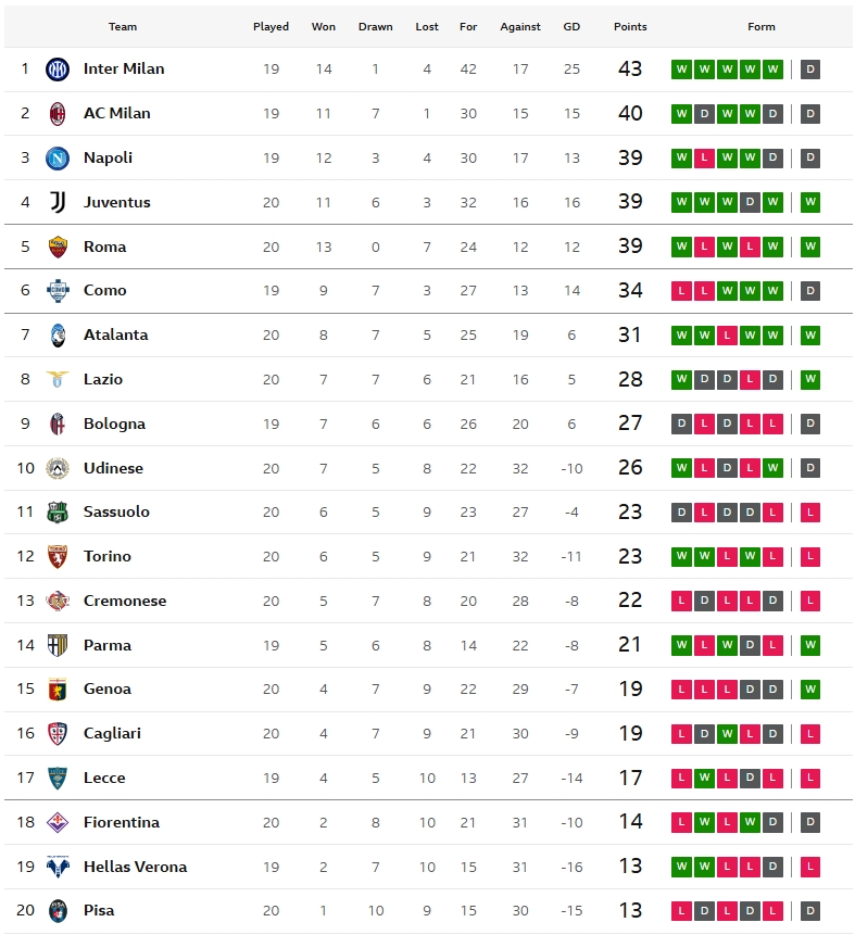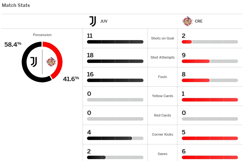 ยูเวนตุส ระเบิดฟอร์มดุ หลังเปิดบ้านถล่มเอาชนะ เครโมเนเซ่ แบบขาดลอย 5-0 คนยิงประตูไม่ซ้ำหน้าเลยจาก เบรเมอร์, โจนาธาน เดวิด, เคนาน ยิลดิซ, ฟิลิปโป้ แตร์รัชชาโน่ (OG.) และ เวสตัน แม็คเคนนี่ เก็บ 3 คะแนนสำคัญ ทำให้ตอนนี้อันดับ 3, 4 และ 5 คะแนนเท่ากันหมดเลย