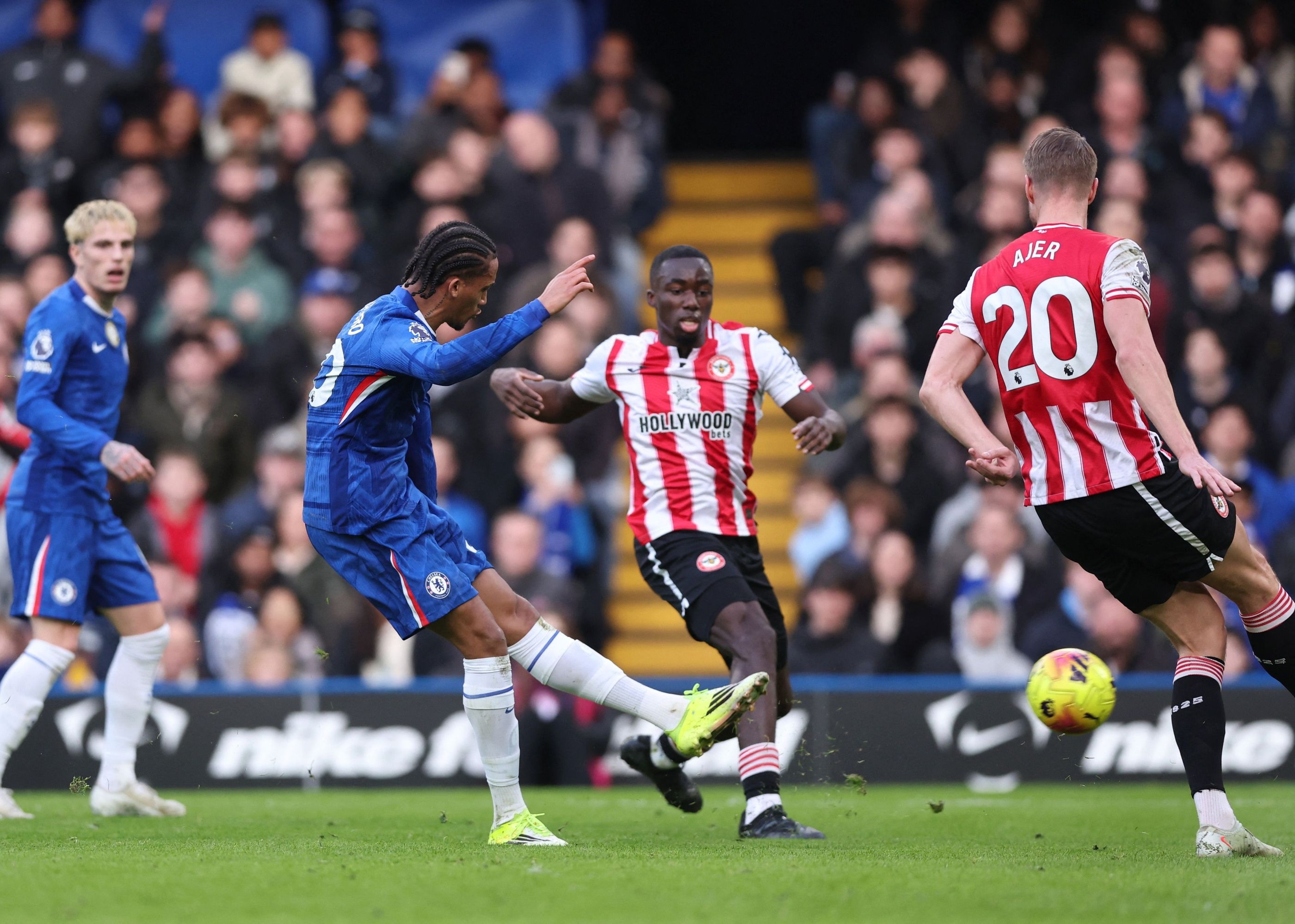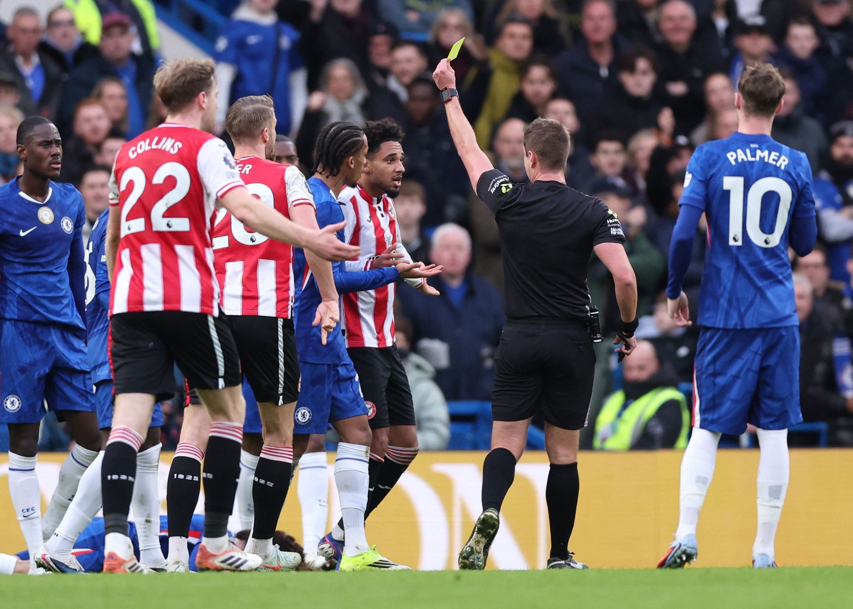 เบรนท์ฟอร์ด มาได้เตะมุมทางขวาเปิดเข้ามาตรงกลาง ชาเดอ เบียดกับ เอนโซ อยู่พยายามโหม่งส่งบอลออกเสาแรก ฟ้องว่าโดนดึงเสื้อแต่กรรมการไม่ได้ว่าอะไร ระหว่างโวยวาย คูคูเรญ่า มาปัดมืออีก ชาเดอ เลยผลัก คูคูเรญ่า ล้มไปกรรมการแจกเหลือง