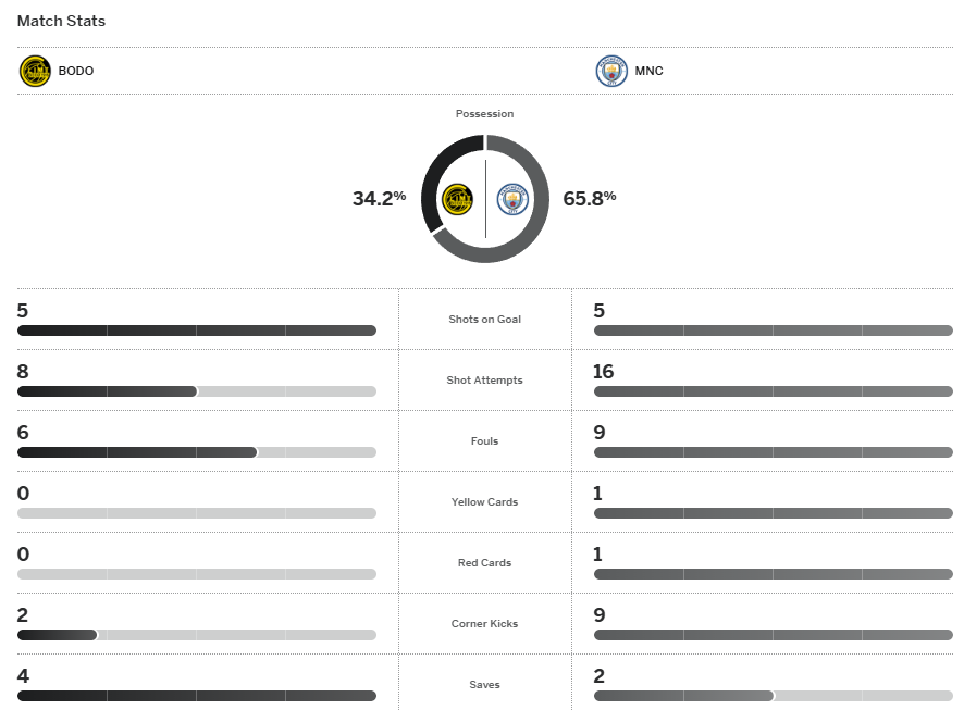 จบเกม แมนฯ ซิตี้ พ่ายให้กับ โบโด ไปอย่างไม่คาดคิด 3-1 ทำให้ 7 เกมหลังสุดในทุกรายการพวกเขาหาชัยชนะเจอแค่ 2 นัดเท่านั้น ส่วนอันดับในแชมเปี้ยนส์ลีกนั้นพวกเขายังรั้งที่ 4 แต่ก็มีโอกาสโดนเบียดหล่นลงมาเพราะคะแนนไล่ๆกันอยู่