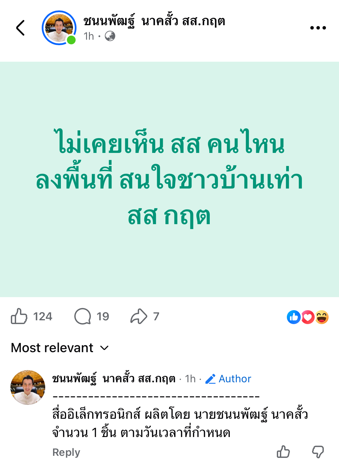 โพสต์ยกย่องสส.กฤต:ไม่เคยเห็นสส.คนไหนสนใจชาวบ้านเท่าสส.กฤต