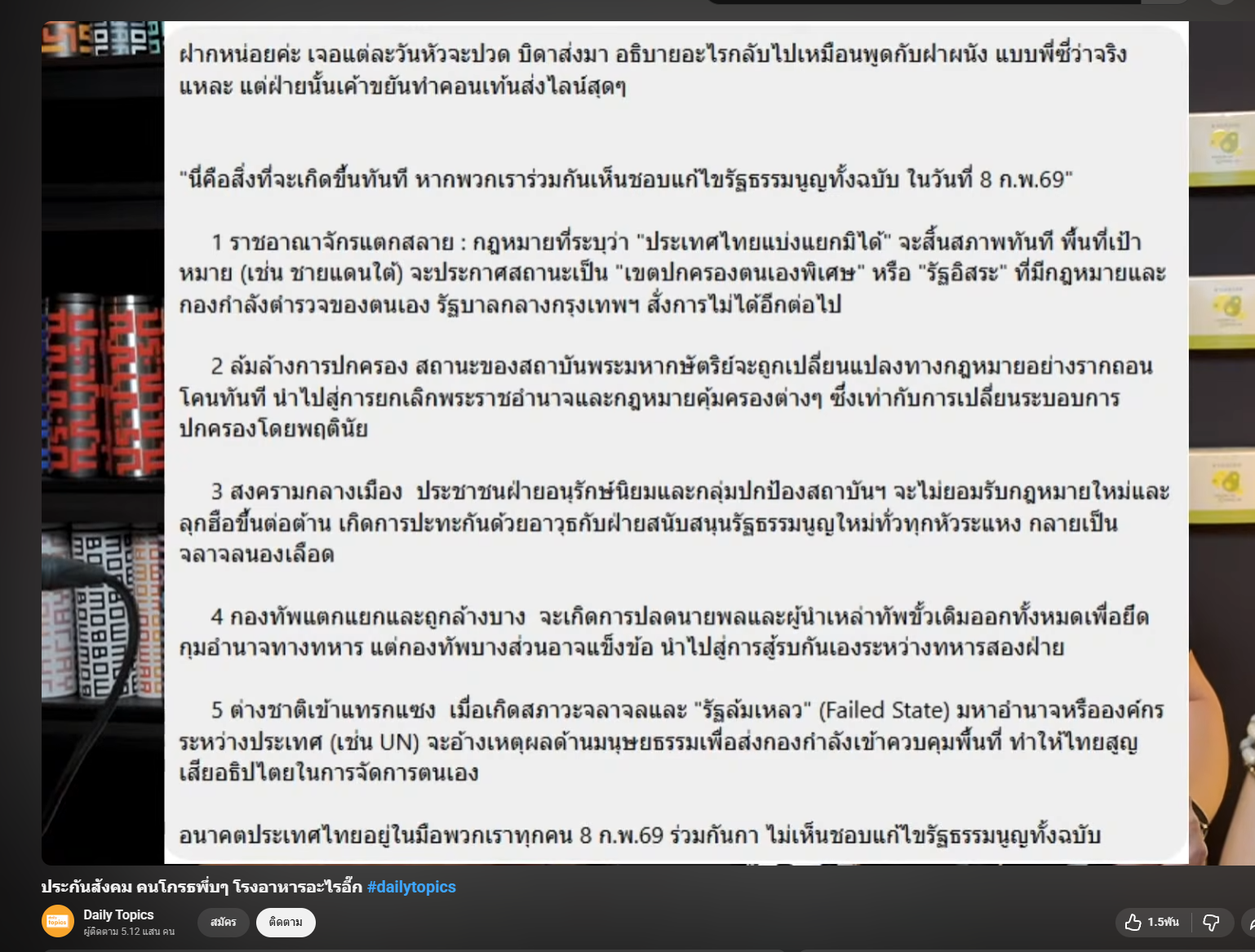 [RE: "นี่คือสิ่งที่จะเกิดขึ้นทันที หากเราเห็นชอบแก้ไขรัฐธรรมนูญ ในวันที่ 8 ก.พ.69"]