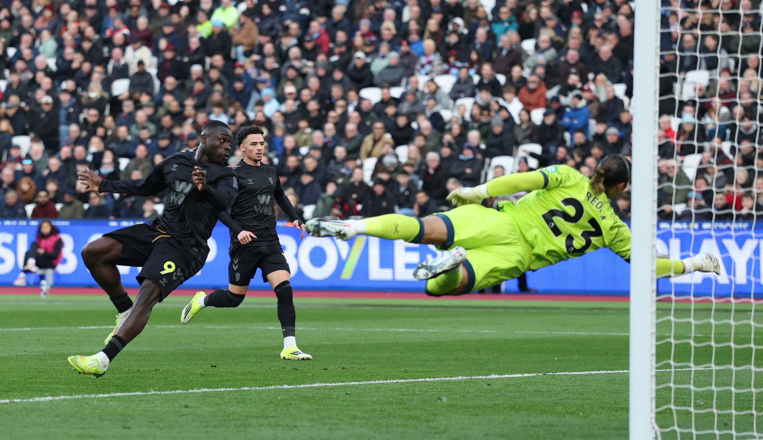 เกือบมีประตูเพิ่มให้ เวสต์แฮม เข้าแล้วในจังหวะ โบเว่น ยิงไกลแล้วบอลติดแฉลบ ปาโบล พยายามตามไปเล่นยกบอลข้าม รูฟส์ ที่ออกมาปิดมุมไปได้แต่บอลก็หลุดกรอบออกหลัง