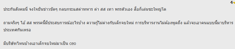 ผมถามประโยคนึง แล้วเค้าเคยมาได้บริหารประเทศหรือยังวะะะะะะะ แค่นี้มรึงคิดไม่ได้หรอ เค้ายังไม่เคยมาทำหน้าที่ตรงนี้เลย แล้วเค้าจะเอาประสบการณ์มาจากไหนวะ .... ฟวยเอ้ยยยยยยยยยยยยย