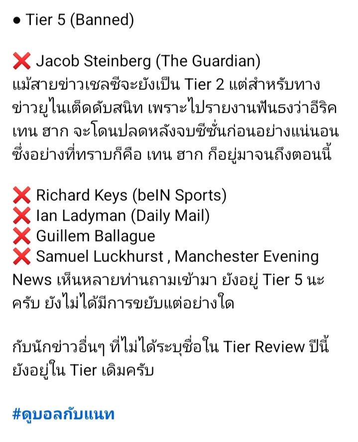 ส่วนใน reddit แฟนแมนยูต่่งประเทศก็ให้เทียร์ 5 เหมือนกัน https://www.reddit.com/r/reddevils/wiki/transfer-reliability-guide/