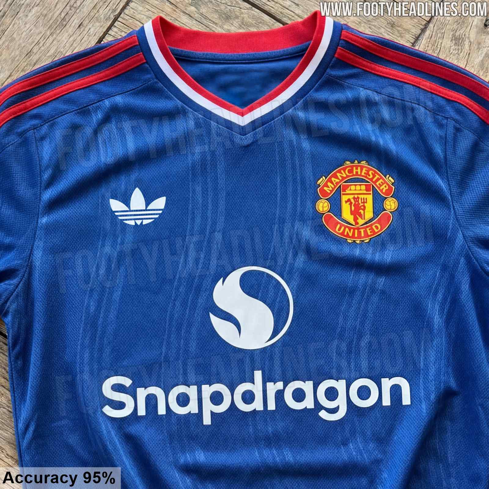 เยือน เหมือนชุดโกล์แขนสั้น (แต่ปกติแมนยูเสื้อเอาท์ฟีลด์ ถ้าไม่ใช่เสื้อปีเก่า หลังๆจะใช้สีน้ำเงินเข้มๆเกือบดำมืด พอมาโทนสีเสื้อนี้ แอบฟีลคล้ายพวกเสื้อปลอมแมนยู ที่เขาใส่กันกับที่ขายในตลาด เห็นเขาชอบออกแบบใช้สีฟ้า/น้ำเงินกัน)