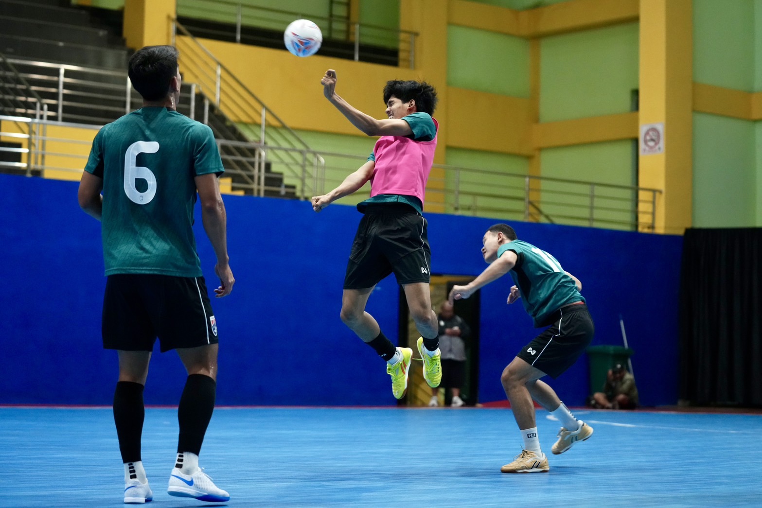 การฝึกซ้อมครั้งนี้ “โค้ชหมี” รักษ์พล สายเนตรงาม หัวหน้าผู้ฝึกสอนฟุตซอลชายทีมชาติไทย เน้นไปที่การแก้ไขข้อผิดพลาด และฟื้นฟูร่างกาย โดยใช้เวลาประมาณ 1 ชั่วโมง 30 นาที