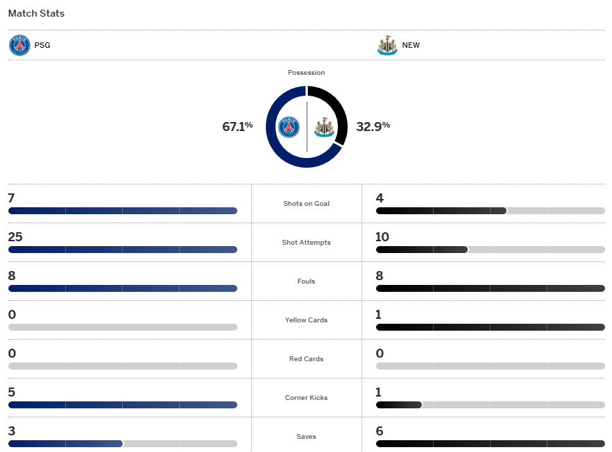 มีช่วงที่ เปแอสเช ขึ้นมาขึงแถวเขตโทษ นิวคาสเซิ่้ล พักนึงหาช่องยิงไม่ผ่านบล็อกสุดท้ายจบด้วย วิตินญ่า ยิงไกลแต่หนนี้พุ่งข้ามคานออกไป