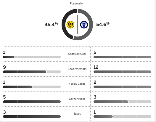 รูปเกมสูสีมีโอกาสทั้งคู่จนนาที 81 เฟเดริโก้ ดิมาร์โก้ ปั่นฟรีคิกขึ้นนำแล้วช่วงทดเจ็บ แอนดี้ ดิยุฟ ตัวสำรองปิดกล่องช่วย อินเตอร์ มิลาน บุกชนะ 2-0 จบอันดับ 10 ขณะที่ โบรุสเซีย ดอร์ทมุนด์ รั้งที่ 17 ยังได้เข้าเพลย์ออฟ แชมป์เปี้ยนส์ ลีก เช่นกัน